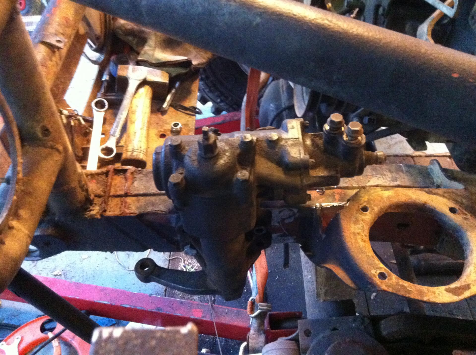 Un arbre de direction combinant un cardant de Land Rover en sortie de colonne de direction avec celui d'un Patrol en entrée de boitier sera réalisé sur mesure.