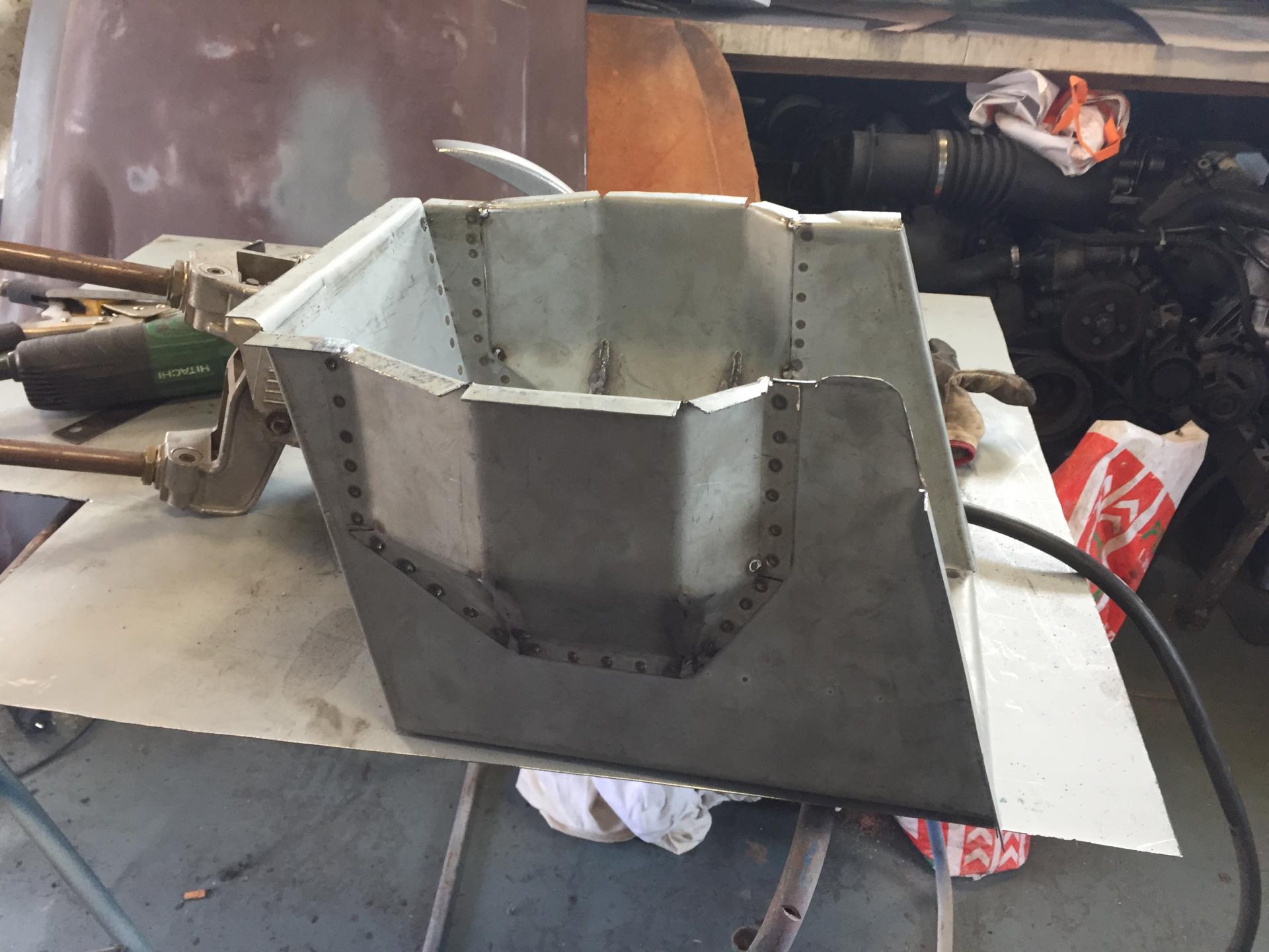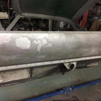 Le nouveau fonds de coffre est soudé par du bouchonnage pour l'avant et les cotés car la pince de la soudeuse par points n'en permet pas l' accès