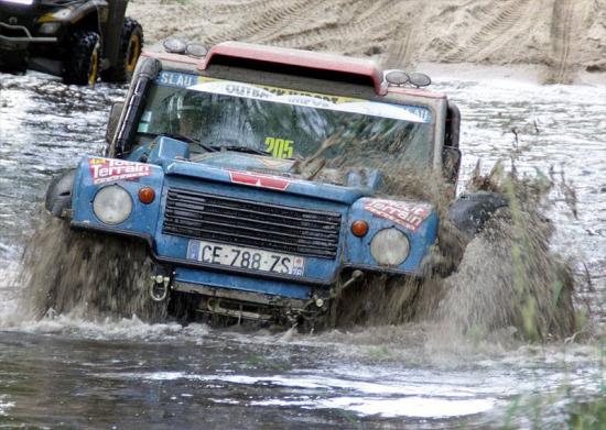 La dernière spéciale longue de 60 Kms , s'annonce la plus dure de la journée. Bourbier, navigation au cap et grandes bandes de sable. Nous retrouvons dans la liaison qui nous conduit au départ de cette dernière spéciale James Marden et son redoutable Def a moteur V8. N'ayant pas d'ordre de départ pour ce dernier parcours de la journée, nous le laissons partir devant car de toute évidence, il roule beaucoup pus vite que nous a tel point que son Def a parfois du mal à résister. Peu importe, les départs étant donnés avec 1 minute d'intervalle, nous n'aurons pas de poussière devant nous et vraissemblablement pas besoin de doubler..... 5, 4, 3, 2, 1...C'est partie. Gonflés à bloc, c'est plein gaz que nous partons, collés au road book nous enchainons les sous-bois, chemins et pistes de sable. Les bourbiers sont tantôt franchis plein gaz ou au treuil mais nous ne perdons jamais beaucoup de temps. Le temps... justement, à la sortie d'un sous-bois alors que nous roulons au cap, nous croisons James à contre sens. Visiblement perdu, il ne tarde pas a faire demi tour et nous recolle ... Une fois remis sur le droit chemin et recalé sur son road-book, il ne tarde pas à nous passer.. encore un cap dans une large bande de sable ou nous voyons pas mal de quad, motos et SSV tournicoter en rond, visiblement en plein jardinage. Yann m'annonce que la cap à venir conduit à un CP caché derrière un bosquet d'arbres... qu'a cela ne tienne, sauf que des bosquets d'arbres nous en avons a perte de vue.... mais..... aperçu le "petit bonhomme" avec une chasuble orange fluo qui nous observe au loin a moitié caché dans un des bosquet. Coupant a travers le nomansland, nous rejoignons directement le fameux bosquet ou je suis persuadé de découvrir le CP. Gagné ! Le CP pointé, Yann se recale immédiatement et direction l'arrivée vitesse grand "V" encore un trou d'eau ou plusieurs quad et SSV se treuillent gentillement. Nous nous lançons en 2ème courte, les 3 blocs verrouillés .... Le TOMCAT progresse régulièrement mais d'un seul coup, après un clacquement sourd dans la tramission le moteur s'emballe et le Tomcat s'immobilise...!... Par réflexe, je repouse le levier du transfert en courte et l'auto repart...Ouf ! Rien de casser et à notre grande surprise le Tomcat s'extirpe aussi tôt du trou rempli d'eau....L'arrivée est au bout du chemin a quelques kilomètres que nous parcourons sans encombre !