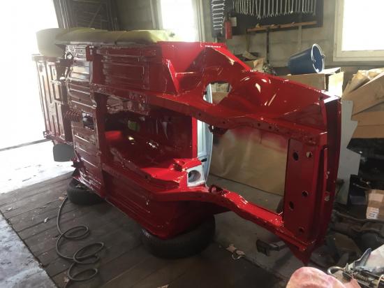 et enfin la peinture définitive couleur RED TARTAN. La peinture utilisée est un "brillant direct" en 2 couches mouillées.